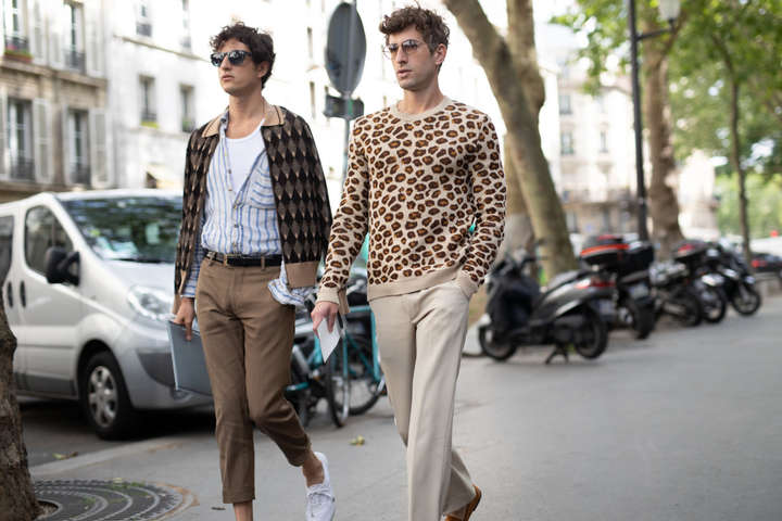 Парни в Париже делали ставки на максимальный комфорт. Как и в Милане, среди местных модников пользуются успехом шорты с гольфами, яркие гавайские рубашки, брюки с завышенной талией, в которые можно заправить майку, казаки на экстремально скошенном каблуке и панамы.