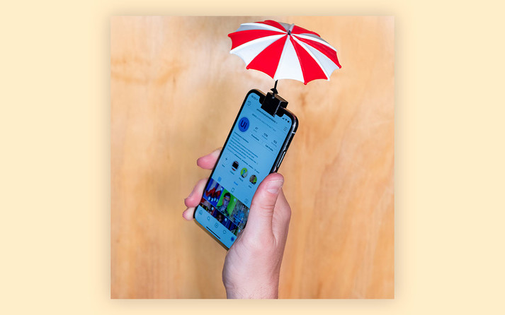 Но решение есть: зонтик для телефона. Прицепите его на верхушку корпуса своего девайса и свайпайте ленту Instagram или пишите сообщение другу независимо от того, насколько сильный ливень на улице.