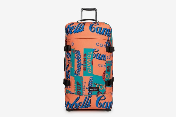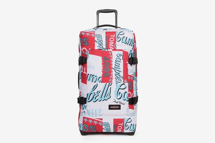 В этом случае багаж на колесиках Tranverz доступен в трех размерах и трех цветовых вариантах. В том числе Eastpak выпустили ограниченный выпуск любимого рюкзака Уорхола Padded Pak’r из серебристой кожи с изображением супа на внутренней части.