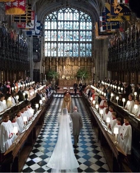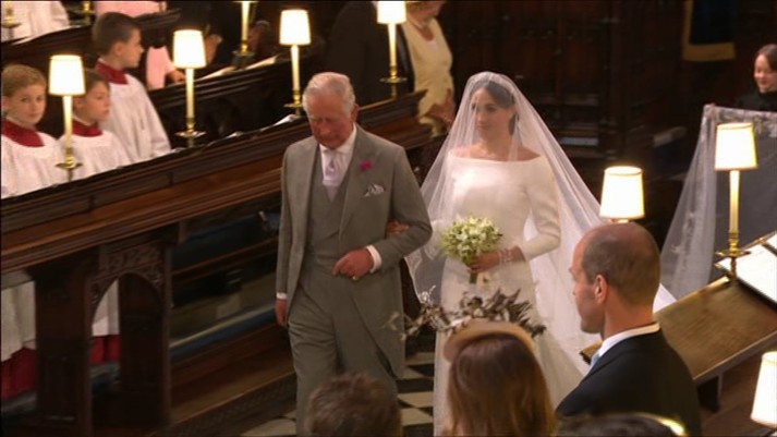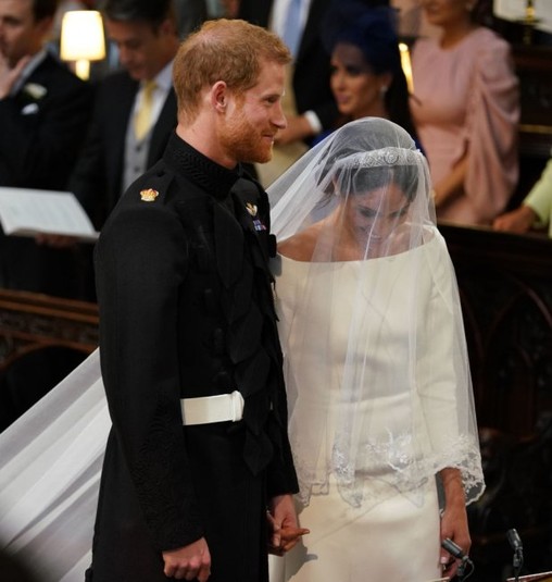Молодожены отныне имеют титулы герцога и герцогини Сассекских. Меган Маркл стала первой королевской невестой, которая половину пути к алтарю прошла самостоятельно. Она шла под композицию Джорджа Фридерика Хэндела Eternal Source of Light Divin. На полпути невесту встретил будущий свекор, принц Чарльз, который подвел ее к алтарю и принцу Гарри. Родной отец невесты не смог прибыть на церемонию по состоянию здоровья.