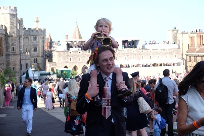 На улицах Виндзора собрались десятки тысяч людей, чтобы отпраздновать королевскую свадьбу. Среди гостей были теннисистка Серена Уильямс, телеведущая Опра Уинфри, Дэвид и Виктория Бекхэмы, актер Джордж Клуни с женой, певец Элтон Джон и другие.