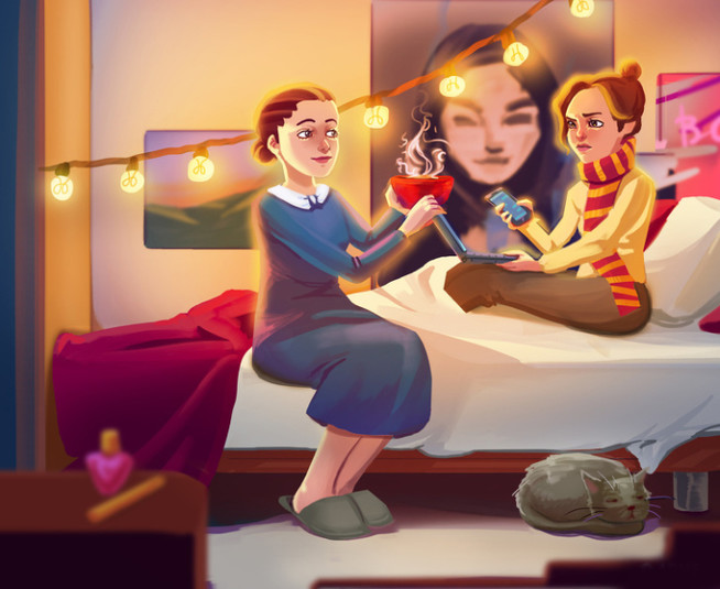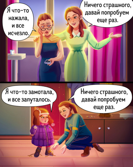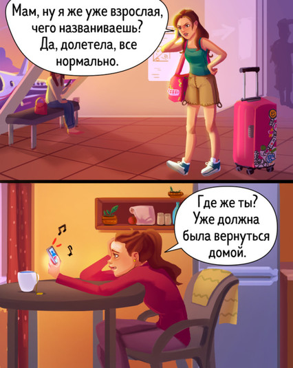 Данная серия иллюстраций Натальи Бреевой – отличный пример того, как складываются взаимоотношения между мамой и уже повзрослевшей дочкой.