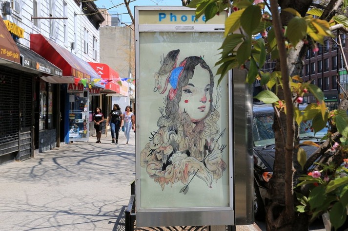 В прошлом году художница Кэролайн Колдуэлл и писатель RJ Rushmore запустили проект Art in Places, для которого пригласили 55 художников и попросили их создать плакаты на свободную тему. Получившиеся работы затем разместили на нью-йоркских телефонных будках, пишет Colossal.