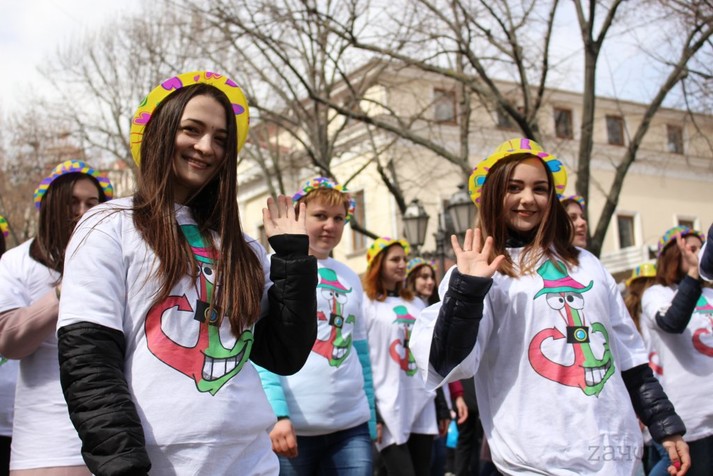 На главной улице Одессы прошел традиционный парад приуроченный главному событию весны - Юморине.