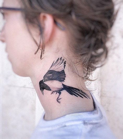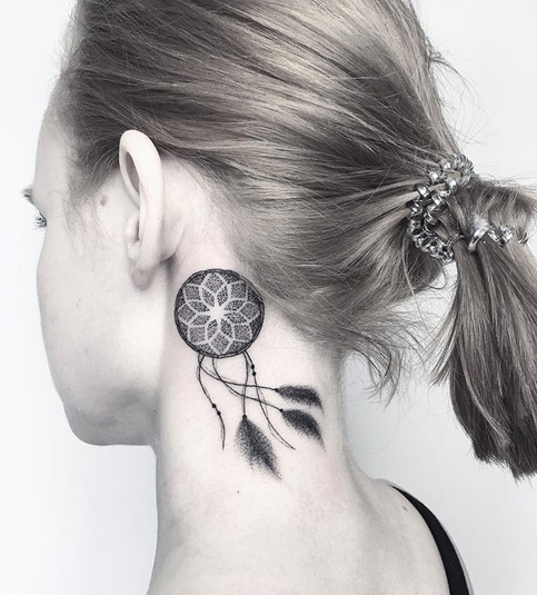 Такая татуировка завоевала популярность благодаря собственной изящности и универсальности. Ведь их достаточно легко скрыть, распустив волосы или подняв воротник. Или же, наоборот, заколов волосы и расстегнув воротник, демонстрировать всем окружающим.