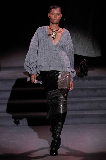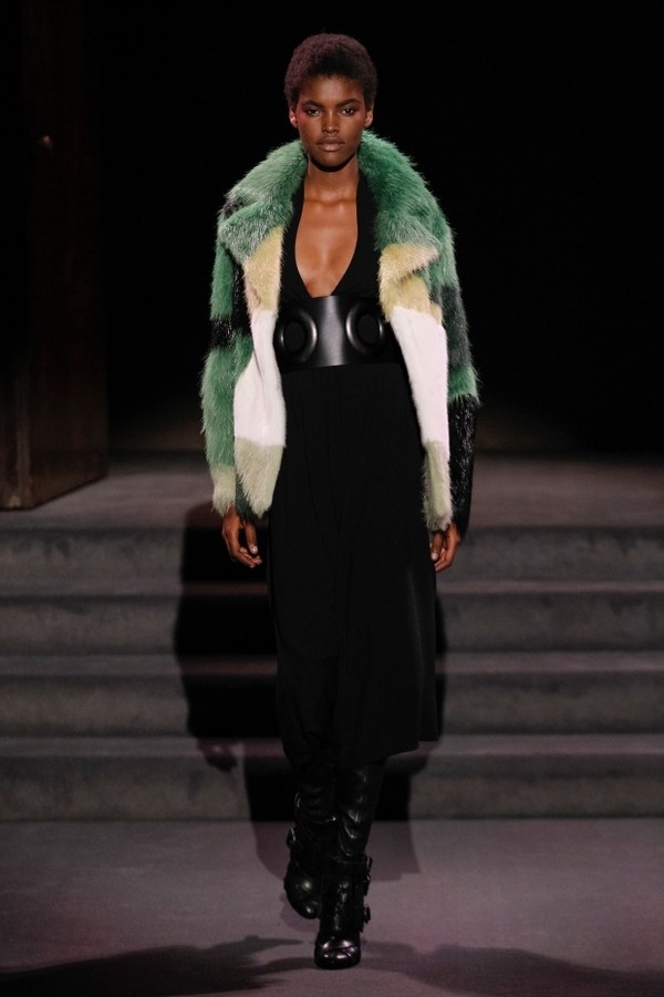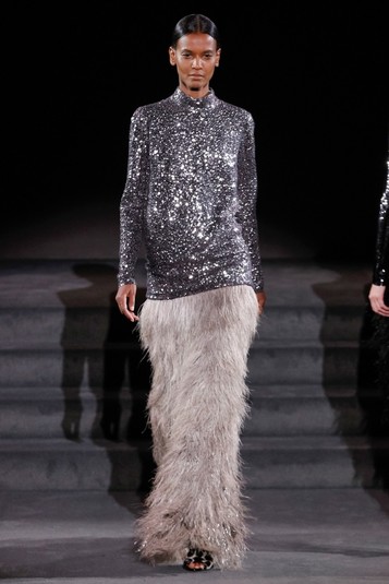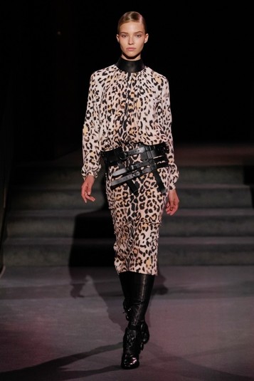 Она как всегда покорила всех зрителей. Форд не изменяет своим традициям. Он опирался на стиль 70-х годов прошлого века. В новой коллекции дизайнер использует разные фактуры, множество мягких цветов. Он все также думает, что современная женщина должны носить дерзкие образы. В этой серии нарядов есть традиционные юбки карандаш, кофты с V-образным вырезом и обтягивающие жакеты.
