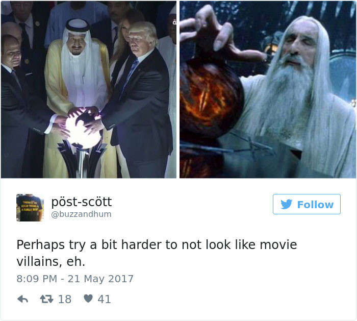 В интернете решили, что фотография — отличная иллюстрация к фильмам и комиксам и Трамп там отнюдь не положительный персонаж.