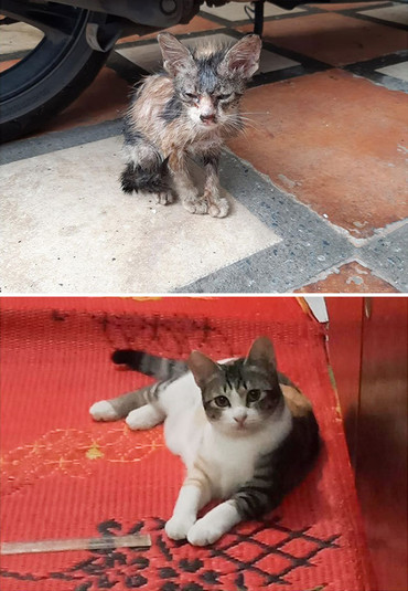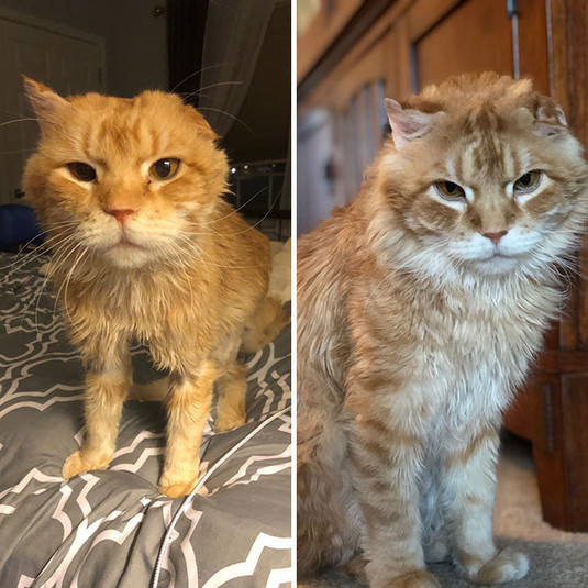 «От испуганного и голодного котенка, найденного недалеко от дома моего парня, до толстого и любопытного хулигана. Путь, пройденный за полгода», «Взял бездомную кошку и ее детенышей домой. Прошел месяц, у нее больше нет проблем с молоком, а у меня есть три толстых котенка», «Мы нашли исхудавшего Харви в канаве. Прошло пять лет, и теперь он уверенный в себе, счастливый и здоровый мальчик», - рассказывают свои истории хозяева спасенных питомцев.