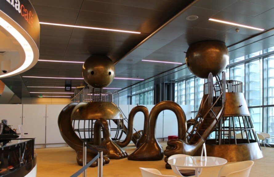Дитячий майданчик прикрашають відомі бронзові чоловічки авторства американського скульптора Тома Оттернесса. Ще одну інсталяцію «Космос» створив французький художник-інсталятор Жан-Мішель Отоніель, натхненний найстарішим астрономічним приладом у світі, який він знайшов у музеї MIA у Катарі.