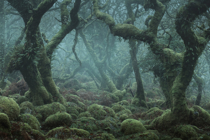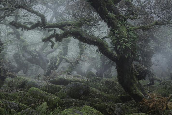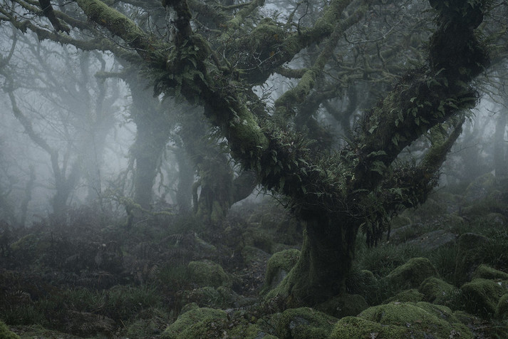 Своей сказочностью серия фотографий «Мистический» обязана густому туману, корявым деревьям и покрытым мхом камням Вистманского леса в Дартмуре, графство Девон