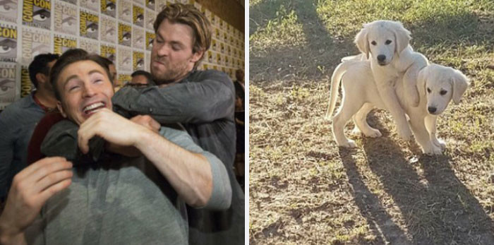 Twitter-аккаунт сравнивает Криса Эванса и милейших собачек