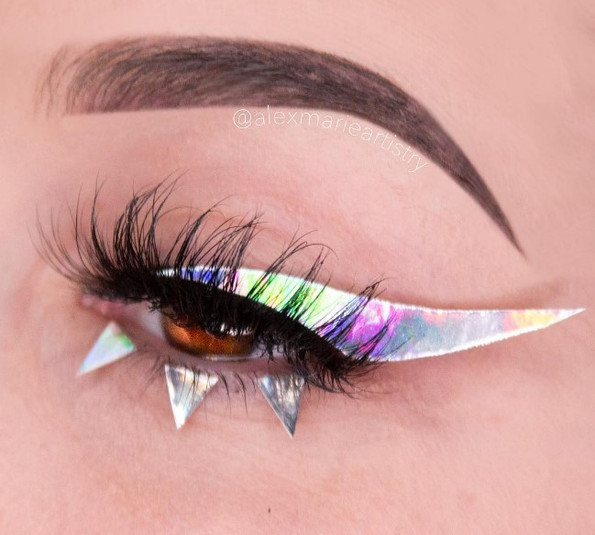 Оригинальный образ представили, как профессиональные визажисты, вдохновленные галактическими трендами в макияже, так и любители, которые попытались повторить эффектный мейк. Предлагаем вместе с нами посмотреть на яркие beauty-образы глаз с голографическими стрелками из Instagram.