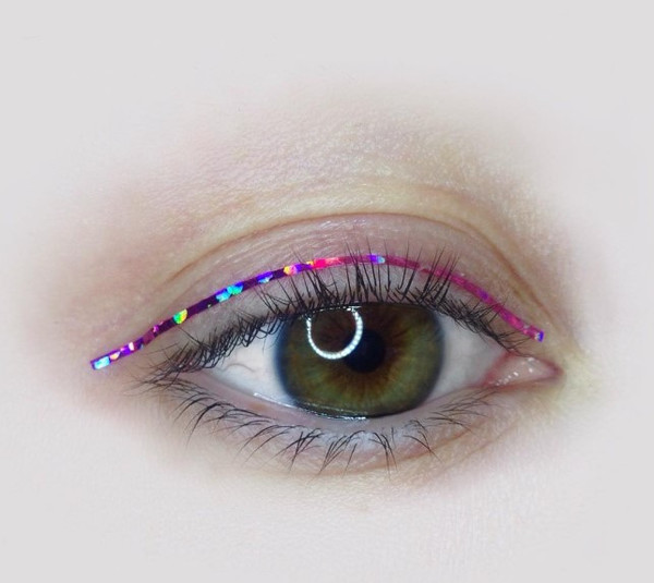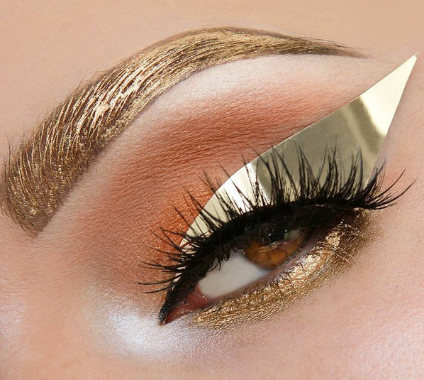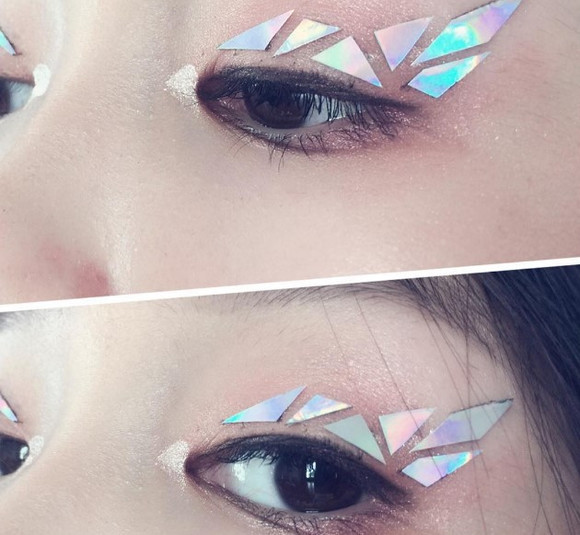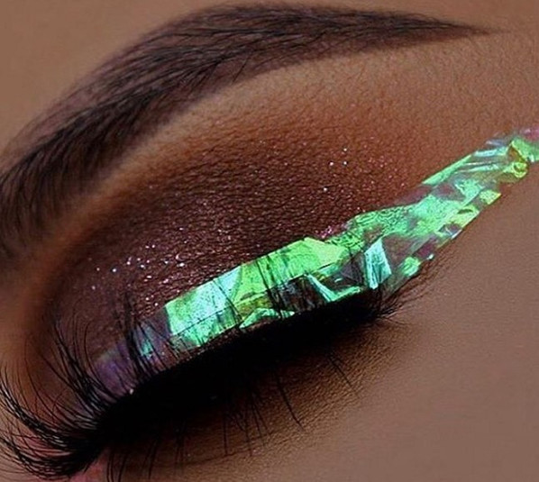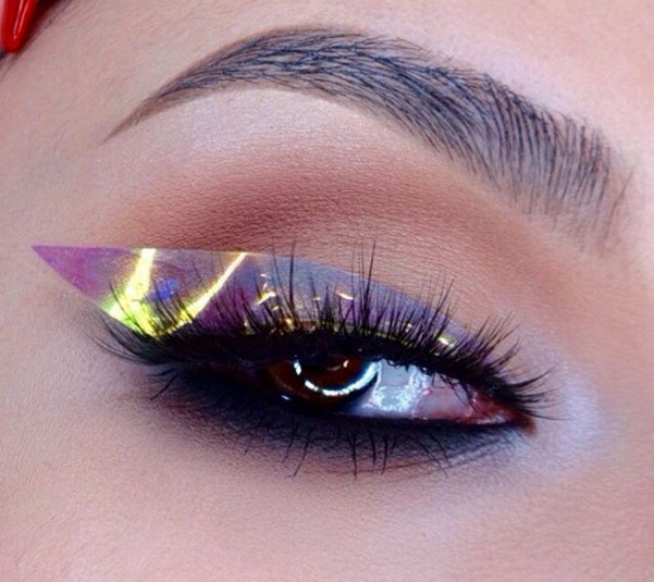 В Instagram настоящей неожиданностью стал новый тренд в мейк-апе глаз – голографические стрелки, выполненные с помощью специальной бумаги или фольги, а также клея для нарощенных ресниц.