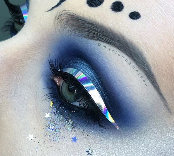 Казалось бы, бьютиголиков уже вряд ли можно чем-то удивить, однако новое видение «галактического» макияжа глаз с эффектными голографическими стрелками подтверждает обратное.