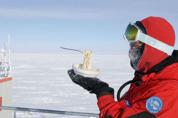 Недавно Сиприан решил ради забавы устроить небольшое кулинарное шоу и приготовить что-нибудь на свежем воздухе. Он сфотографировал различные виды продуктов и блюд в глубокой заморозке, и эти снимки не могли остаться без внимания Интернет-пространства. Конечно же, это было сделано ради забавы, но его снимки, бросающие вызов гравитации, наглядно демонстрируют абсолютную интенсивность холода в Антарктиде, и это уже не шутки.