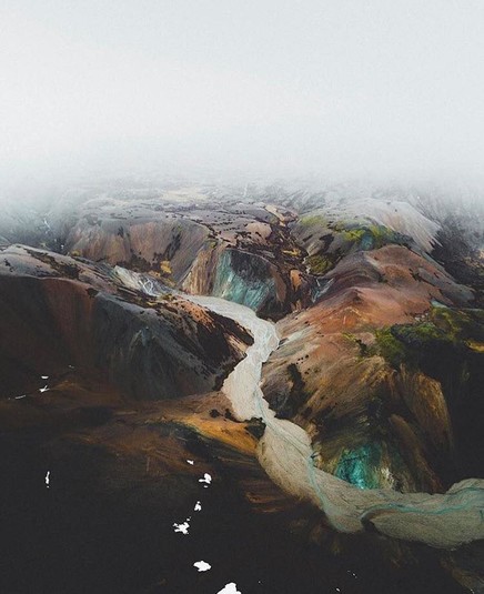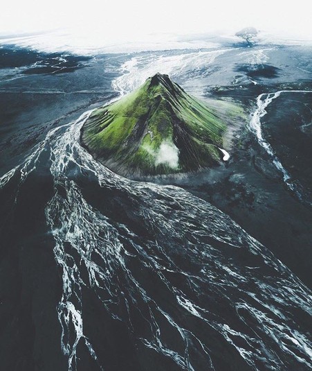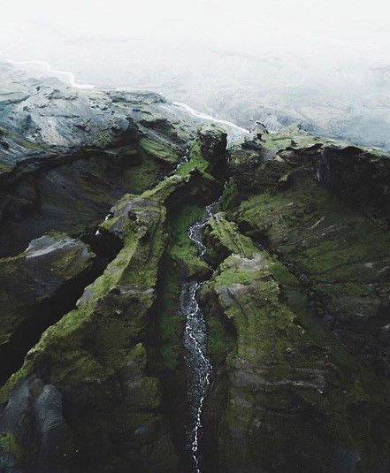«Горные стены. В состоянии почти постоянного движения вода из ледника проталкивается в долину, чтобы просочиться в эти скалистые каньоны во время всего своего путешествия. От бесчисленных извержений вулкана скала постоянно формировалась на протяжении миллионов лет. В текстуре и узорах этих глыб мы можем получить визуальное представление об их истории», – описал увиденное Бенджамин Хардман.
