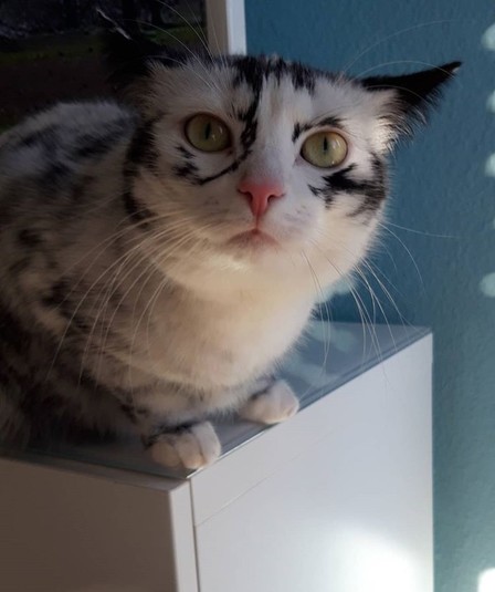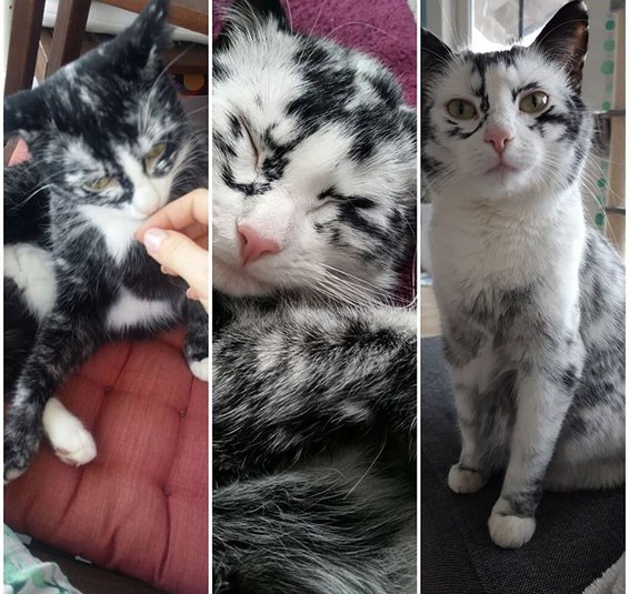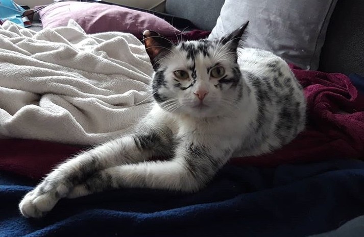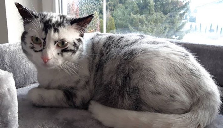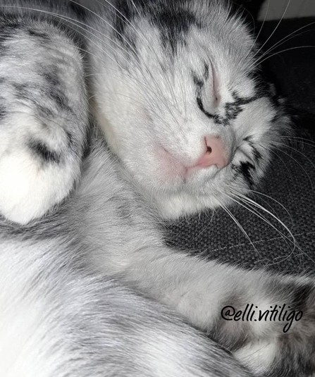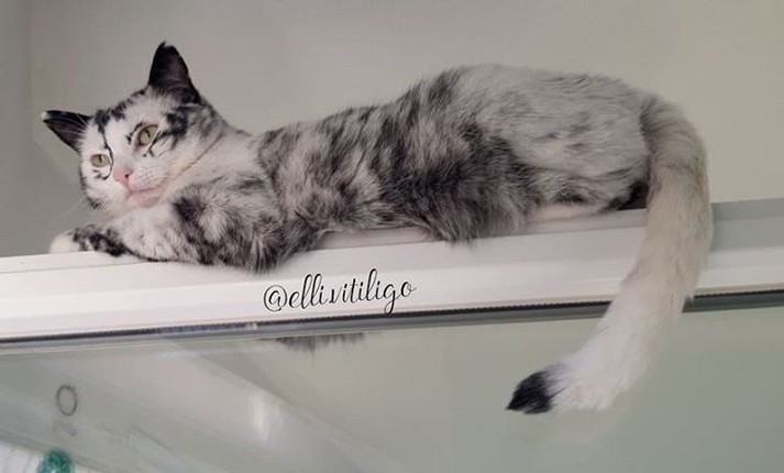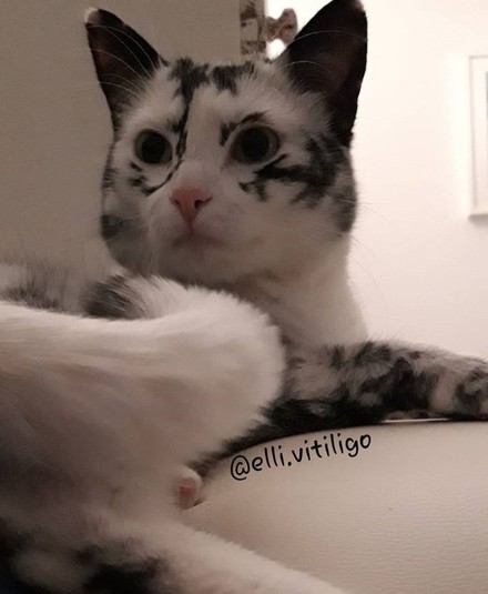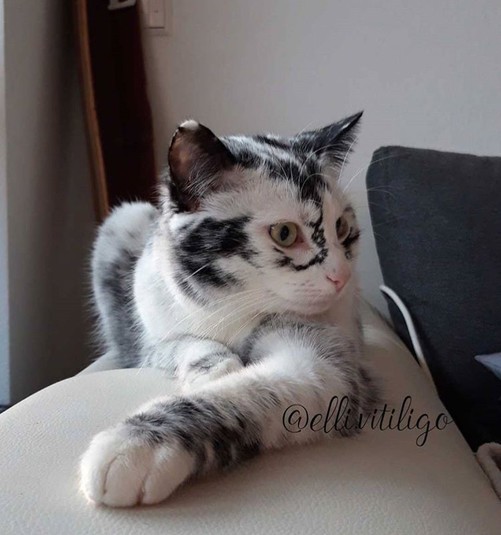 Необычная кошка по кличке Элли проживает в семье Николь Бом из Германии. У животного редкое заболевание кожи под названием витилиго, которое буквально перекрашивает ее шерсть.