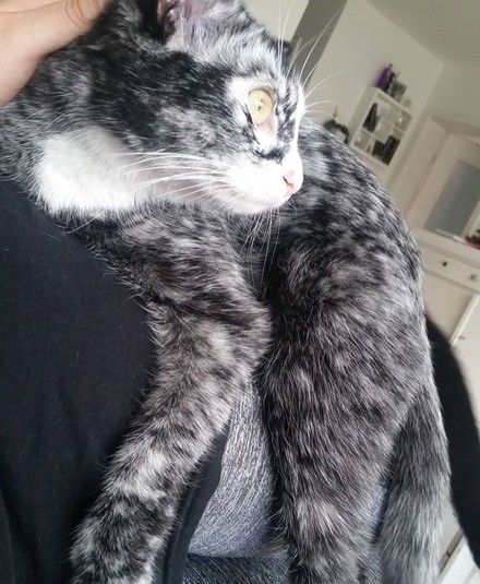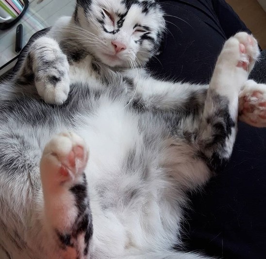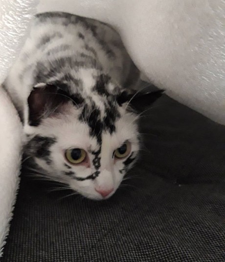 «Изменения начались примерно через год после рождения. Сперва возникло просто маленькое белое пятнышко на спине. На всякий случай я решила отвезти ее к врачу», — рассказывает хозяйка необычной кошки Николь.