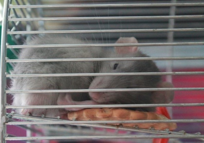 А история одного мышонка просто поражает. Хозяин дал ему печеньку за отвагу, проявленную в ветеринарной клинике. Теперь он ходит с ней по клетке и спит на ней, периодически подгрызая.