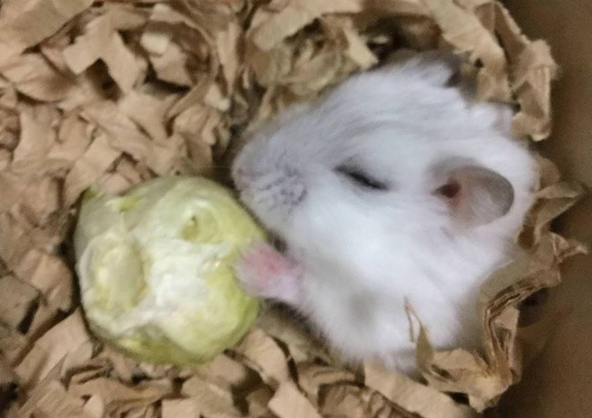 Еще один грызун без ума от брюссельской капусты. Он так усердно ел, что даже заснул с ней.