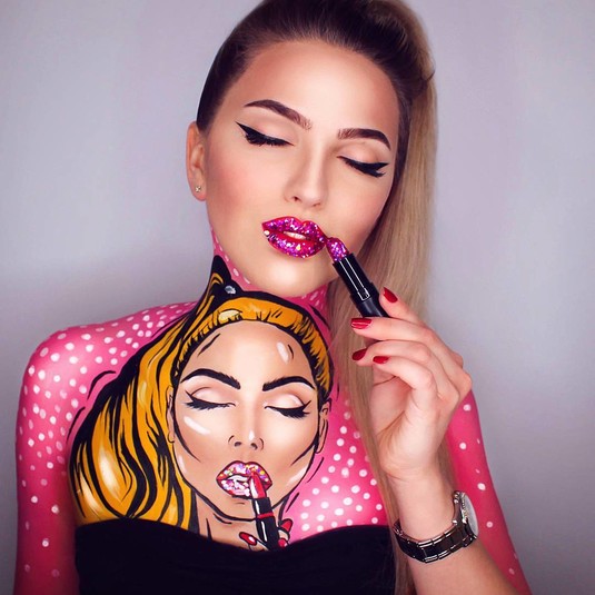 Количество подписчиков художницы достигло уже 50 тыс. Они активно комментируют работы Екатерины. Кроме портретов звезд она также создает очень изобретательный макияж, который вполне может заменить карнавальные маски.