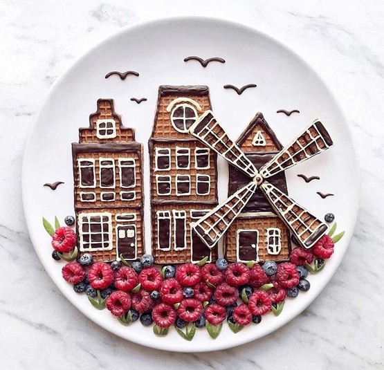 Украинский дизайнер и фотограф Дарья Косарь создает картины из фруктов, макарон, приправ и других продуктов.за время своей творческо-кулинарной карьеры девушка обзавелась целой армией поклонников в Instagram и YouTube.
