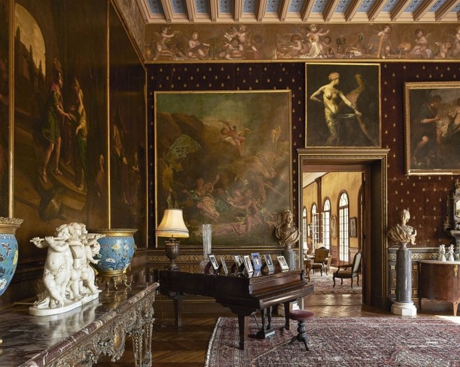 В доме есть 14 спален, огромная гостиная, люстра, французские двери и портреты 19 века в орнаментальных рамах. Также в особняке есть огромная библиотека, в которой около 3000 книг о флоре и натурализме.