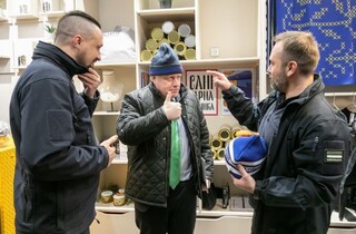 «Історія починається в м. Ірпінь, де Борис Джонсон побував під одного зі своїх візитів в Україну. Подивіться, яким він був сумним. І ми подумали, що причина може бути в його головному уборі. Тож коли Борис відвідав наш вокзал, ми знайшли для нього іншу шапку. Спочатку Борис не був впевнений в тому, що ця ідея є хорошою. Тому ми просто подарували йому нову шапку», – йдеться в публікації Камишіна.