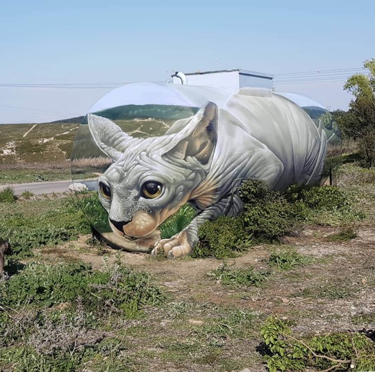 Граффити - это искусство или вандализм? Да, каракули на стенах города не украшают, но есть художники, которые преображают серую действительность, буквально создавая музей современного искусства под открытым небом. Художник из Франции с псевдонимом Braga last1 - прямое тому доказательство. Он превратил старую невзрачную цистерну в огромного реалистичного кота породы сфинкс, и это выглядит очень круто.