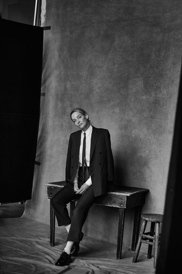 Фотосет выполнен в фирменном стиле Питера Линдберга и включил в себя черно-белые портреты и студийные кадры с кинозвездой.