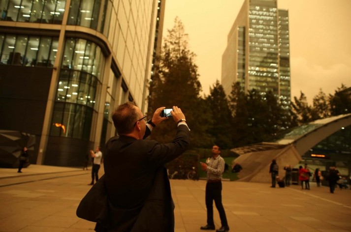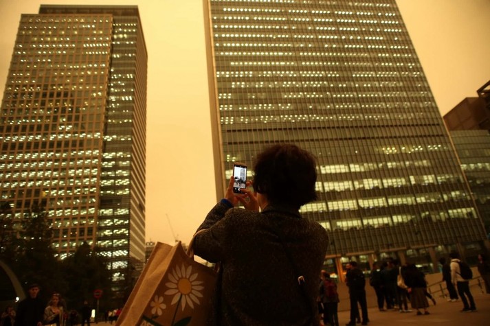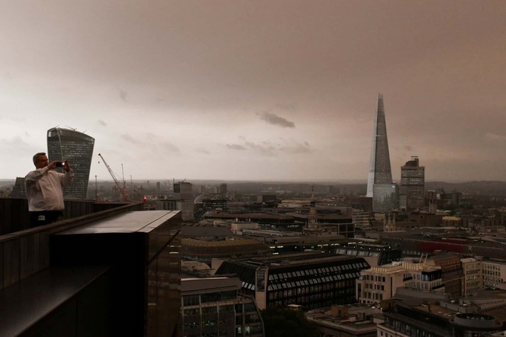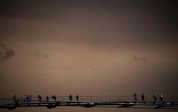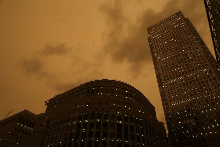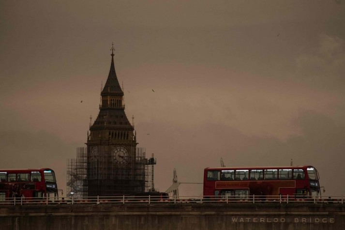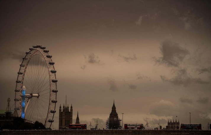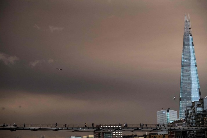 Из-за пыли, которую принёс с собой ураган, небо над Британскими островами приобретало коричневые и оранжевые оттенки.