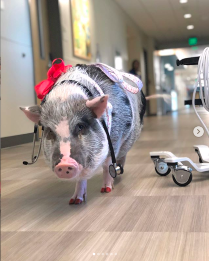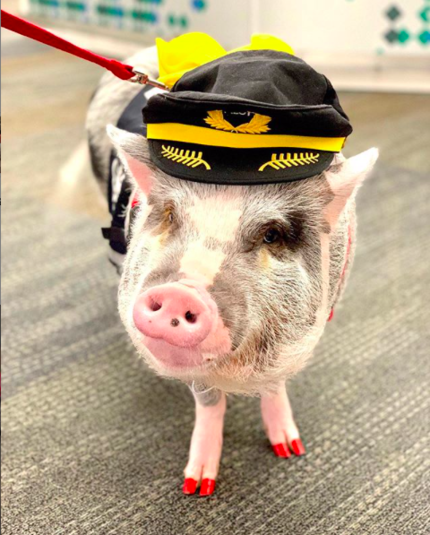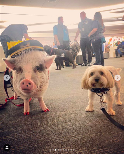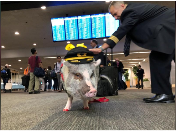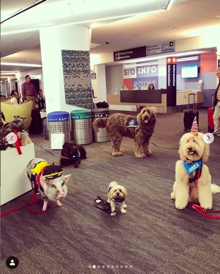 В аэропорту Сан-Франциско появилась свинья, которая помогает пассажирам снять стресс перед перелетом