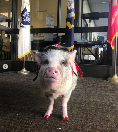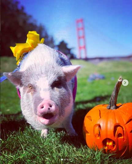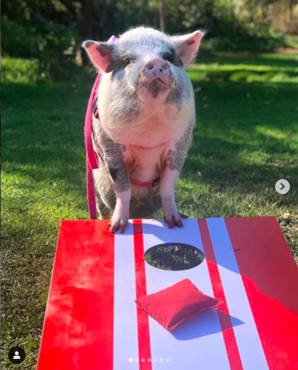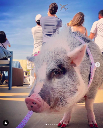 Также свинка активно проводит свободное время - гуляет в парках, ходит в рестораны, участвует в демонстрациях и фотосессиях.