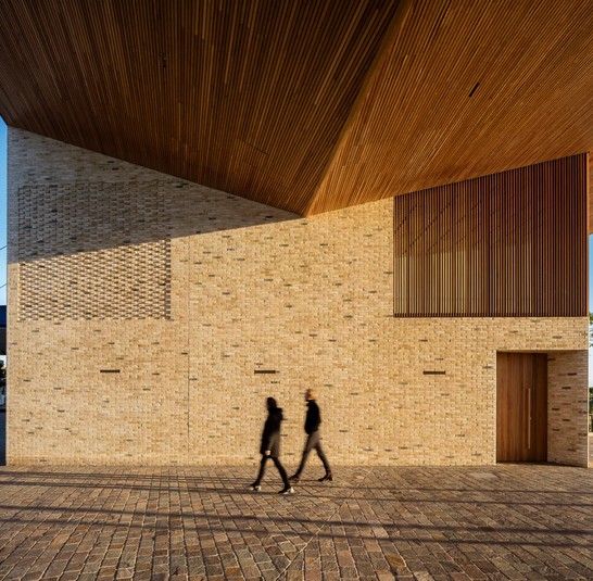 Арка из дерева и кирпича должно поощрять горожан проводить здесь время и идти дальше к берегу реки. Сооружение случае не только «порталом», но и рамки, которая формирует вид на набережную как картину.