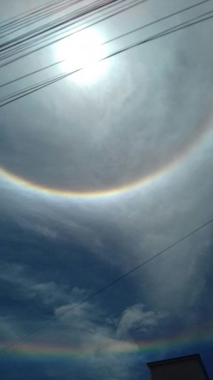 Лучше всего за этим явлением удалось понаблюдать жителям бразильского штата Санта-Катарина. Ученые называют это явление двойным гало. Этот феномен вызывается ледяными кристаллами в перистых облаках на высоте 5-10 км в верхних слоях тропосферы. Отраженный и преломленный ледяными кристаллами свет часто разлагается в спектр, что делает гало похожим на радугу.