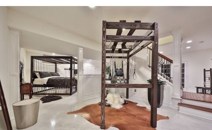 А вот в подвале оборудовано несколько помещений для настоящих секс-игрищ, которые помогут воплотить в жизнь самые смелые сексуальные фантазии.