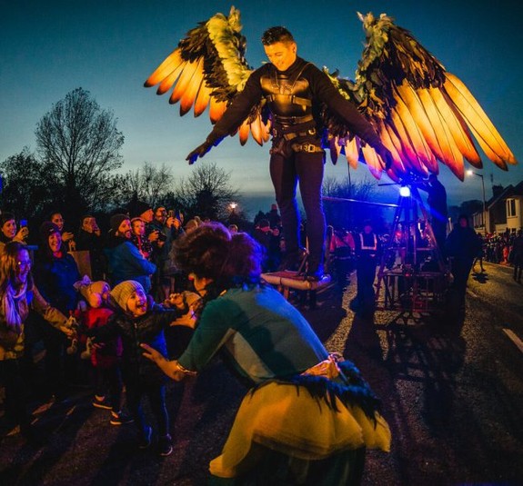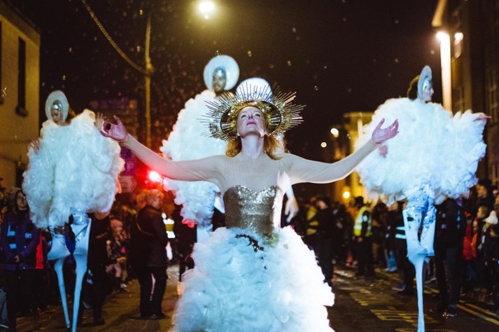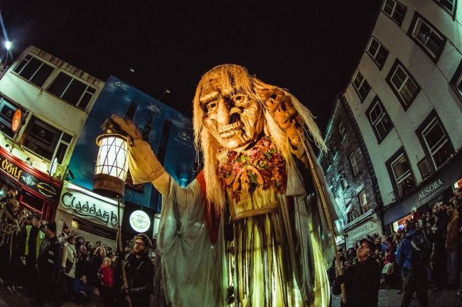 Возглавляют парад четырехметровые гиганты, в которых без труда узнаются персонажи ирландских мифов - народ богини Дану, фоморы, сказочные чудовища – в сопровождении ходулистов, музыкантов, акробатов, заклинателей огня и танцоров.