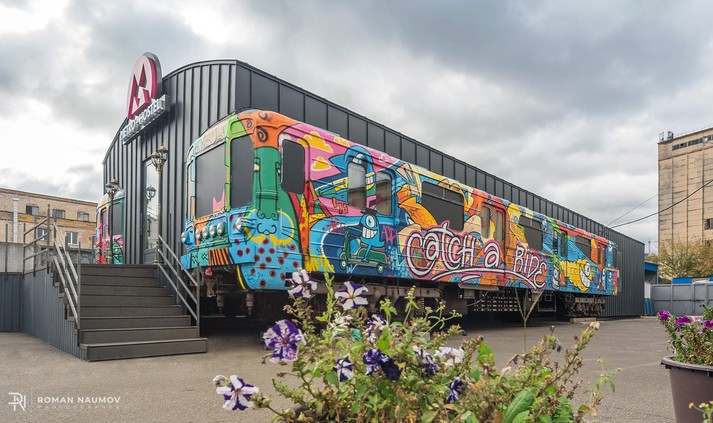 В Киеве открыли хостел в двух бывших вагонах метро. Отмечается, что два вагона соединили вместе и сверху накрыли крышей.