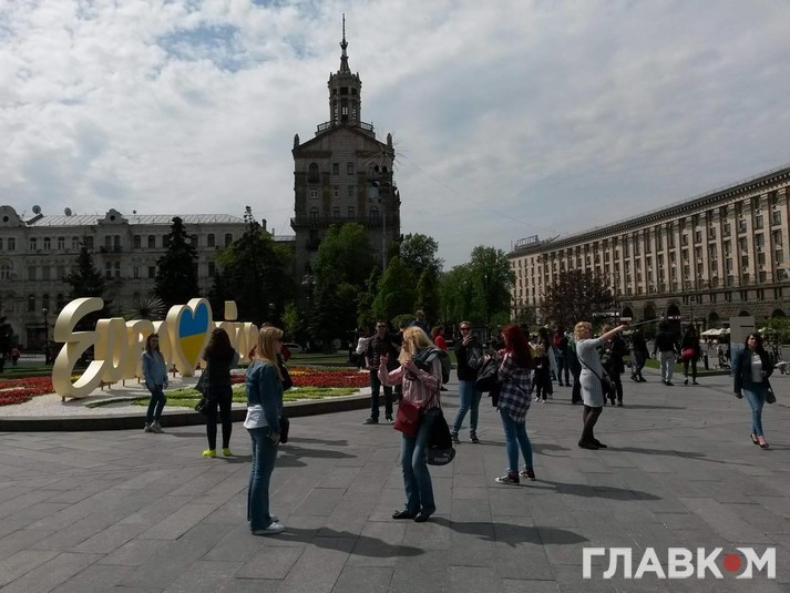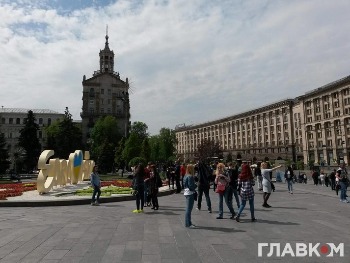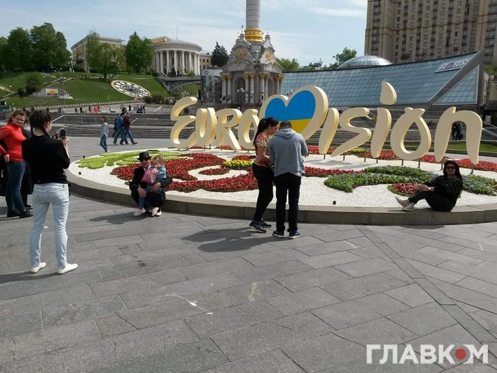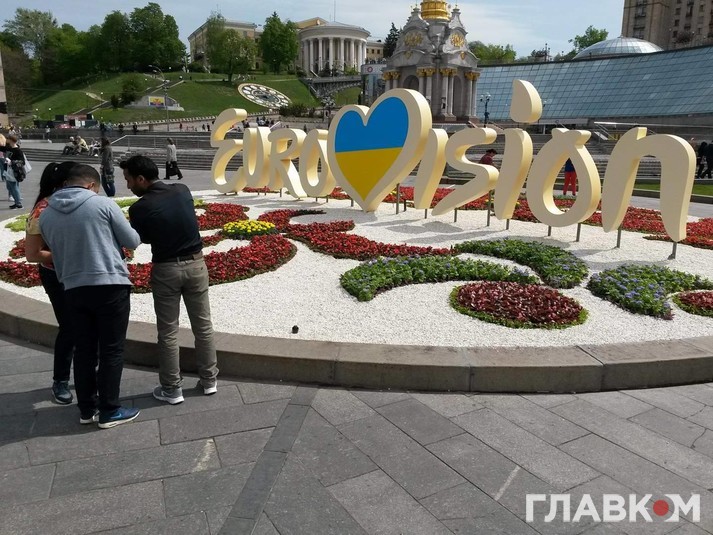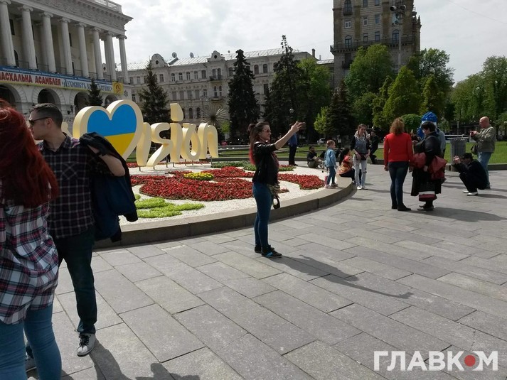 На Майдане Независимости в Киеве установили большие буквы – надпись-логотип международного песенного конкурса «Евровидение», который совсем скоро состоится в Киеве.