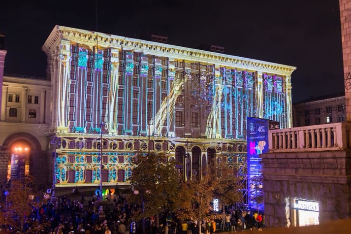 Жителей и гостей столицы удивляли невероятными шоу и световыми инсталляциями. В этот раз в гигантский экран для конкурса 3D-видеомэппинга превратилось здание Киевской городской администрации на Крещатике.