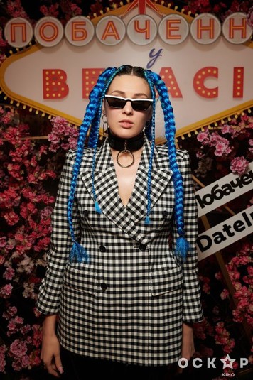 Певица Maruv выбрала для выхода эффектный образ: она предстала перед камерами с голубыми косичками и в очках. Имидж звезда подчеркнула клетчатым пиджаком, который является трендом сезона.