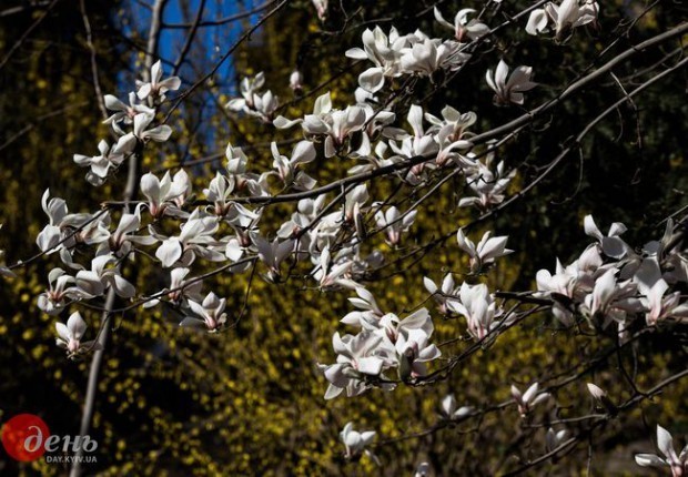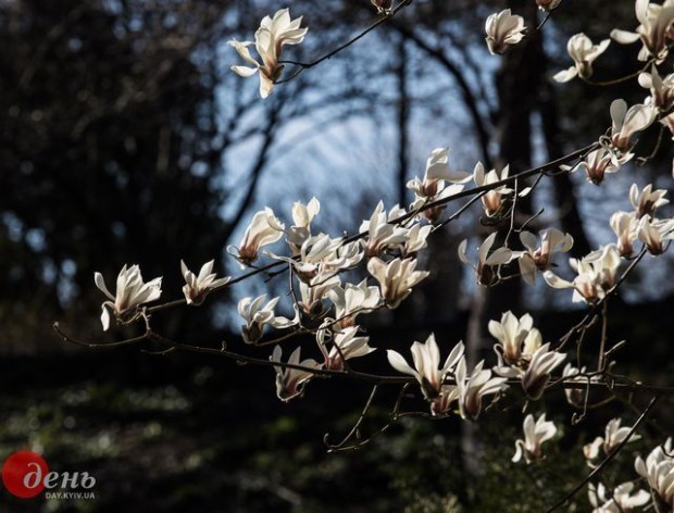 В Киевском ботаническом саду им. А. В. Фомина (ул. Симона Петлюры, 1) зацвели первые магнолии.