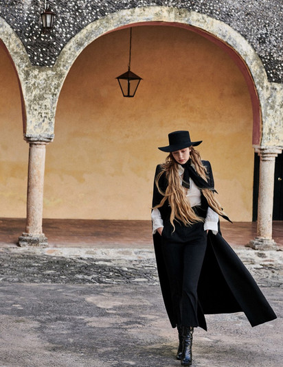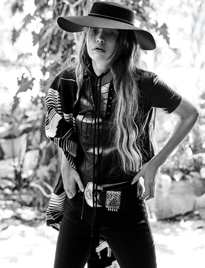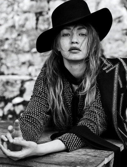Над съемкой работал итальянский фотограф Джампаоло Сгура. На снимках Хадид позирует в нарядах в стиле вестерн от Saint Laurent и Burberry. Каждый образ модели стилист Пол Кавако дополнил широкополыми шляпами.