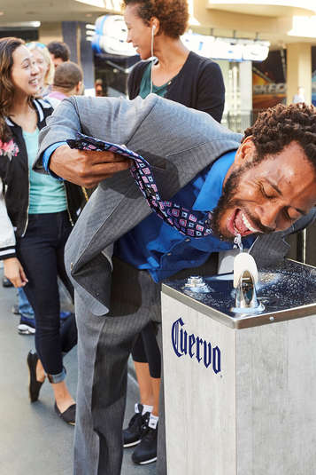 Фонтанчики с бесплатной «серебряной» текилой Jose Cuervo вместо воды появились в торговом центре Hollywood & Highland (на фото), на Венис-Бич и в культовом гей-баре The Abbey в Западном Голливуде. Они начали работу около полудня, и уже к двум часам дня у каждого из них дегустацию текилы провели до трех сотен человек.
