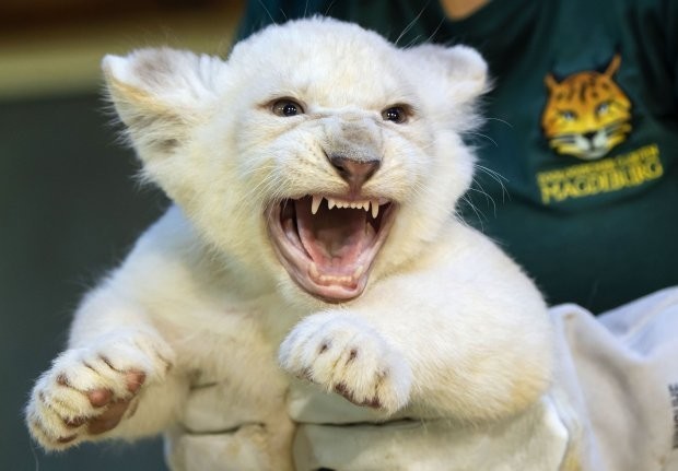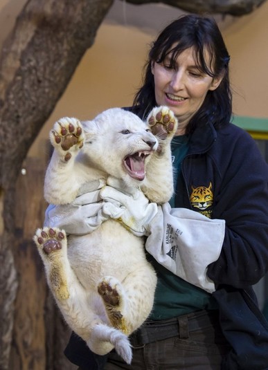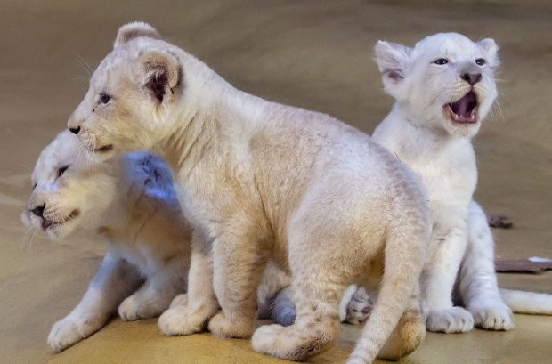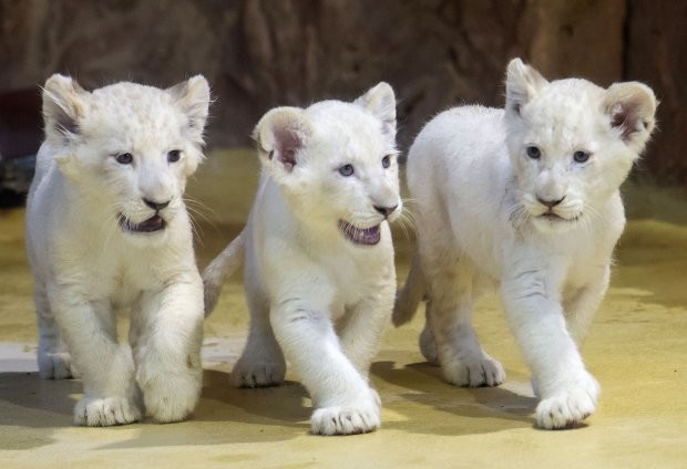 В зоопарке немецкого города Магдебург 19 ноября родились трое белых львят.
