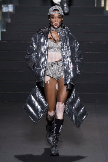 «Это мой подарок поклонникам», – рассказывал Скотт перед показом. Вместе с креативным директором H&M Анн-Софи Йоханссон они сочинили жизнерадостную коллекцию в лучших традициях эпохи MTV на заре нулевых. На подиуме – искрящийся микс уличной одежды: объемные парки и комбинезоны, расшитые пайетками, леопардовый мех и массивная бижутерия, которая не даст Мисси Эллиотт и Гвен Стефани спать по ночам.