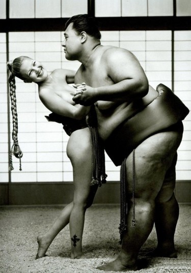 В объятьях сумоиста и с бананом в носу: В сети появились забавные архивные снимки знаменитостей