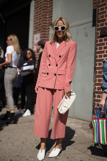 Постоянные гостьи модных отчетов уже давно научились использовать теплый коралл в своих целях – стилист Джованна Батталья-Энгельберт выбирает его нежную вариацию и сочетает с белым и натуральной рыжей гаммой, а диджей Лей Лезарк предпочитает насыщенную, почти красную версию, и носит ее в паре с контрастным черным.