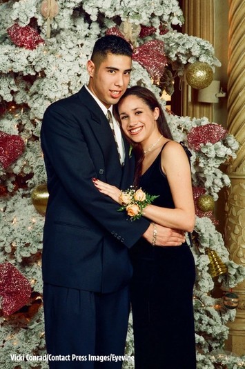 Так, на одном из них 15-летняя Меган изображена на рождественской вечеринке, которая проводилась в одном из отелей Лос-Анджелеса, вместе с Луисом на другом рождественском школьном балу — в 1996 году. Она снова в черном платье, но с другой прической — ее волосы распущены.