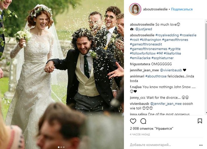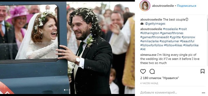 Звезды «Игры Престолов» Кит Харингтон и Роуз Лесли связали себя узами брака